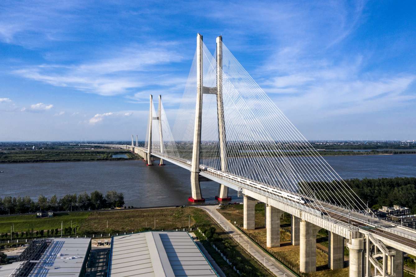 ? ? 鳊魚洲長江特大橋是京港高鐵客運專線安九段的重點控制性工程,途經(jīng)湖北省黃岡市、江西省九江市,申報橋梁長度4.257千米,主要包含主跨672米鋼箱混合梁交叉索斜拉橋1座,主跨140米混凝土斜拉橋1座,連續(xù)梁3聯(lián),現(xiàn)澆梁15孔,預制梁16孔,無砟軌道、有砟軌道及四電系統(tǒng)安裝工程。其中跨長江南汊航道橋全長1320米,為雙塔雙索面鋼箱混合梁交叉索斜拉橋,斜拉橋主梁由鋼箱梁和混凝土箱梁組成,主塔均采用H型鋼筋混凝土結(jié)構(gòu),塔高分別為252米、242米,是目前世界上跨度最大的四線鐵路交叉索鋼箱-混凝土混合梁斜拉橋。跨長江北汊航道橋全長378米,為預應力混凝土獨塔斜拉橋,主塔高129.6m,梁體為單箱六室預應力混凝土箱梁,主跨節(jié)段采用牽索掛籃懸澆施工,最重節(jié)段達930t,為國內(nèi)外之最。工程創(chuàng)新首次在跨中部分區(qū)域采用交叉索關(guān)鍵技術(shù),有效解決了此類結(jié)構(gòu)跨中區(qū)域豎向剛度小、車體豎向加速度超標及軌道長波高低不平順的技術(shù)難題。首次在高速鐵路大跨度斜拉橋中研發(fā)應用±800mm大位移上承式梁端伸縮裝置與鋼軌伸縮調(diào)節(jié)器一體化結(jié)構(gòu),有效提高了高速鐵路大跨度橋梁伸縮縫處行車安全性、平順性。首次提出一種帶平臺的三角形下行風嘴有效氣動抑振措施,可完全消除該矩形鋼箱梁的渦激振動。創(chuàng)新深水復雜地質(zhì)大型矩形雙壁鋼圍堰施工技術(shù),大跨度高速鐵路鋼箱混合梁交叉索斜拉橋設計關(guān)鍵技術(shù)和高鐵鋼箱混合梁交叉索斜拉橋建造關(guān)鍵技術(shù)分別達到國際領先和國際先進,該工程獲2022-2023年度中國建設工程魯班獎(國家優(yōu)質(zhì)工程)。